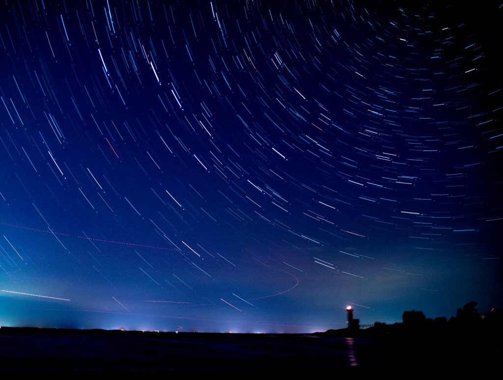 So whoda thunk it would actually happen last fall while we were visiting our favorite spot on the east coast of America—Annisquam on Cape Ann. I’ll spare you the drama of having to scramble over boulders the size of automobiles in the dark carrying my weight in photo gear, barking coyotes and a bit of trespassing, to say nothing of pilot error like realizing tripod legs sink in wet sand and forgetting that people run their dogs on the beach after dark, to show you the image. A star trail, with a few photo bombs by airplanes. I’ve got a few other ideas for that spot that, hopefully, I’ll remember to show the pictures of in the future. Stay tuned.